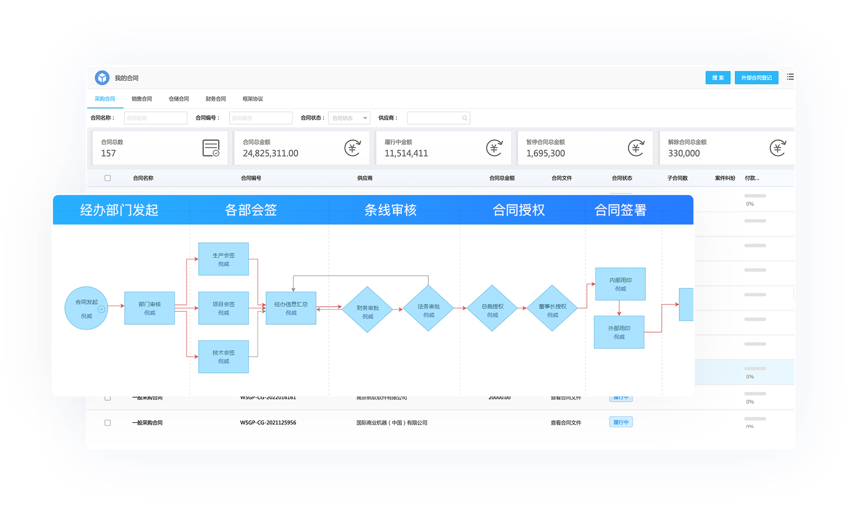 京桥通合同管理台账记录与合同执行过程相关的所有信息,如供应商信息、电子寻源过程、协议、合同交流变更及订单执行过程、支付往来、票据开具等信息,并支持相关文本电子化。