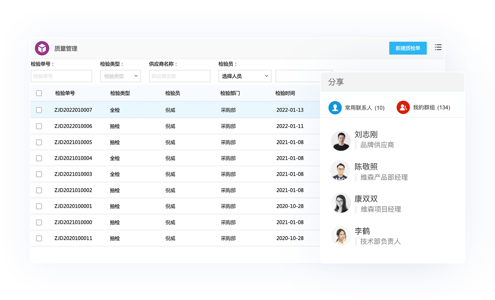 京桥通支持订单多质检方式的结果记录或导入,也可以针对质检结果全程联动质检交流过程;同时供应商在供应商门户或者微信上可以实时收到质检信息和电子质检报告。