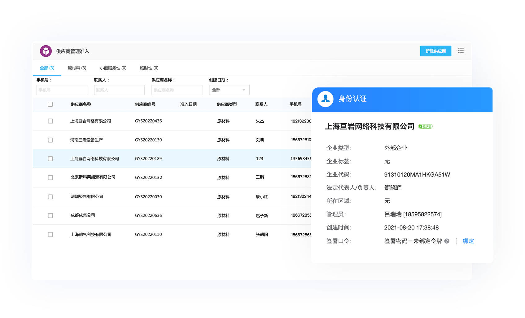 寻源身份认证及核验