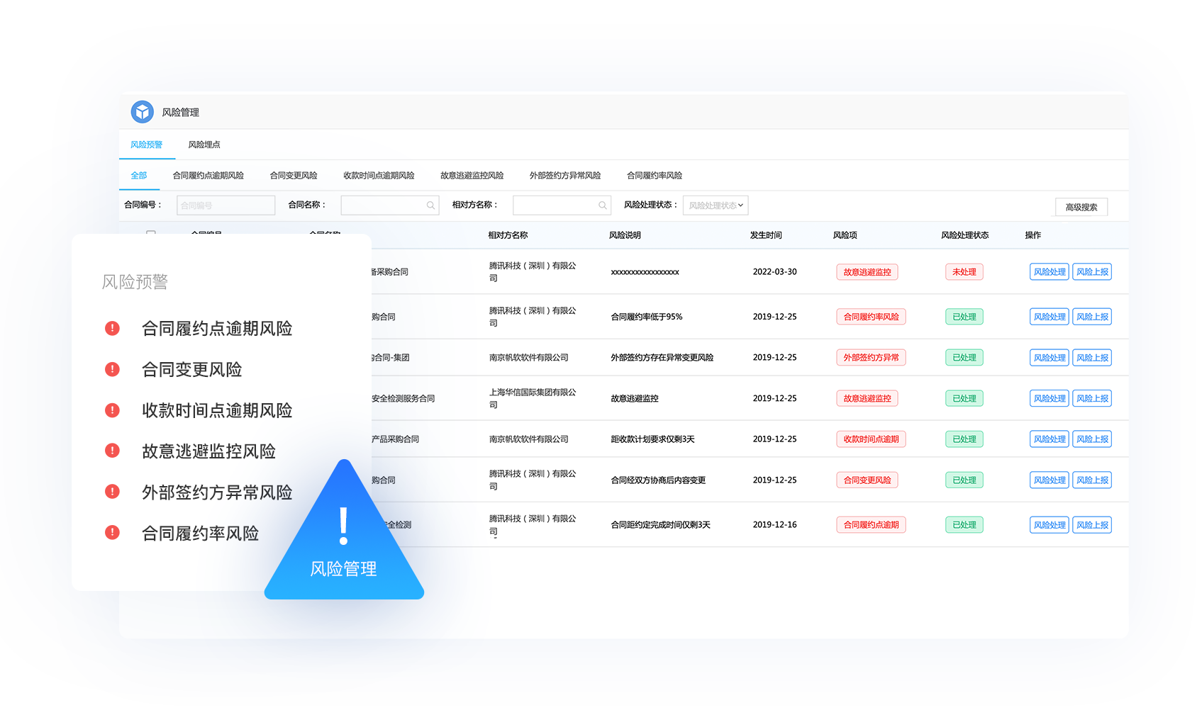 京桥通自动采集和汇总互联网上的供应商的工商信息、诉讼信息、产品舆情等信息,并通过智能化分析多角度预警风险;与系统预设的风险埋点对比形成实时风险点提示。